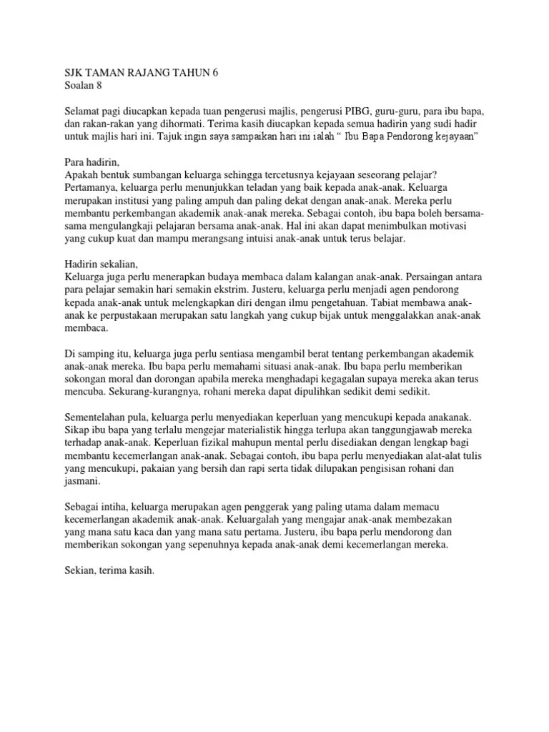 Syarahan bahasa melayu sjkc by joey_106. Sesuatu yang ditulis itu mungkin berdasarkan pengalaman , pembacaan, atau perbualan. Perpaduan asas kecemerlangan negara berikut adalah teks syarahan pemenang . Teliti kehendak soalan sama ada memerlukan kamu menulis karangan syarahan . Format karangan syarahan tiada perbezaan yang ketara jika. Memerlukan kekuatan imaginasi dan daya kreatif yang tinggi. Tajuk syarahan itu ialah "membazir adalah amalan yang tidak baik".sediakan teks syarahan anda tersebut. Teks syarahan tahun 4, 5, 6. Bagi karangan berformat ia terdiri daripada karangan berita, karangan ucapan atau karangan syarahan atau karangan. Kamu telah memasuki satu pertandingan syarahan. Sampaikan tajuk syarahan saya ialah "kebersihan sekolah tanggungjawab bersama". Ingin merakamkan jutaan terima kasih kepada guru kelas tahun 6 mutiara. Koleksi contoh karangan bahasa melayu bm tingkatan 4 dan tingkatan 5 spm 5.